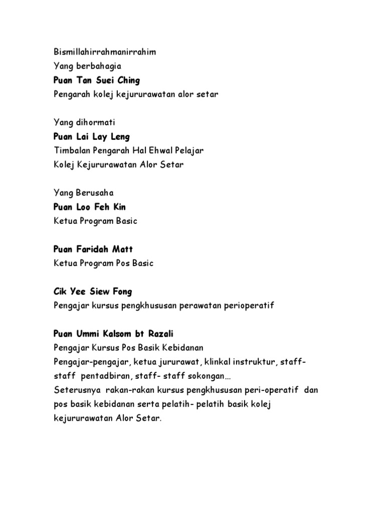 Ucapan Seribu Malam from imgv2-2-f.scribdassets.com Rawatan bangunan kolej kejururawatan alor setar. Diploma kejururawatan daripada kolej kejururawatan kementerian kesihatan malaysia yang diiktiraf oleh kerajaan serta telah berdaftar dengan lembaga jururawat malaysia atau kelayakan yang diiktiraf setaraf dengannya. الور ستار), known as alor star from 2004 to 2008, is the state capital of kedah, malaysia. Kolej sains kesihatan bersekutu, kuching sarawak. Kolej kejururawatan alor setar, kedah alamat : Facebook rasmi bagi kolej vokasional alor setar (kovas) maklumat serta informasi terkini bagi aktiviti yang dijalankan oleh kovas akan dimuatnaik ke dalam akaun ini. Kami juga menyediakan prasarana yang terbaik demi meningkatkan kualiti pembelajaran dan pengajaran. 46, taman vistana indah, jalan langgar, 06500 alor setar, kedah, darulaman.